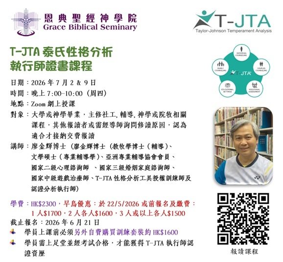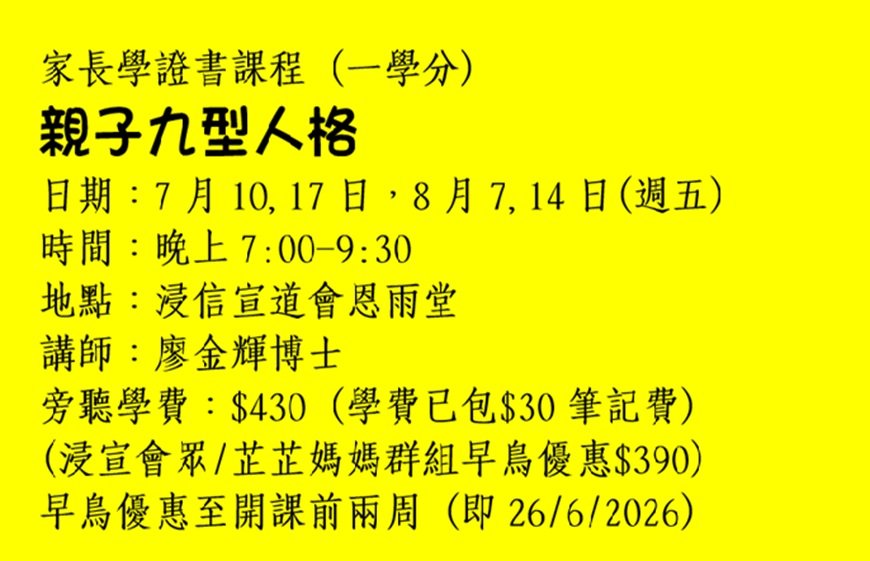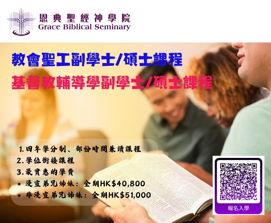 上課地點:香港浸信宣道會聯會:九龍彌敦道469號新光商業大廈20樓2003室浸信宣道會恩雨堂:九龍彌敦道469號新光商業大廈21樓 (升降機至20樓上一層樓梯) (油麻地港鐵站C出口)浸信宣道會明基堂:九龍新蒲崗雙喜街9號. 匯達商業中心. 15樓01-05室 (鑽石山港鐵站A2出口)浸信宣道會明恩堂:新界馬鞍山恆安邨恆峰樓A翼地下 (馬鞍山港鐵站B出口)